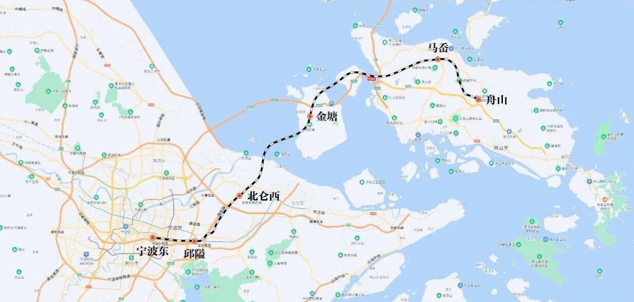 甬舟铁路西起宁波东站,经宁波鄞州区、北仑区,舟山市金塘岛、册子岛、富翅岛至舟山本岛,设7个站,正线长76.4公里,其中新建线路长70.1公里,设计时速250公里,是构建浙江省1小时交通圈,形成大陆与舟山岛间便捷客运的通道。建成后,宁波到舟山的通行时间将从现在的1.5小时缩短至26分钟,舟山到杭州的通行时间由3.5小时缩短至77分钟。(转载请注明见道网www.seetao.com)见道网工程栏目编辑/贺玉婷