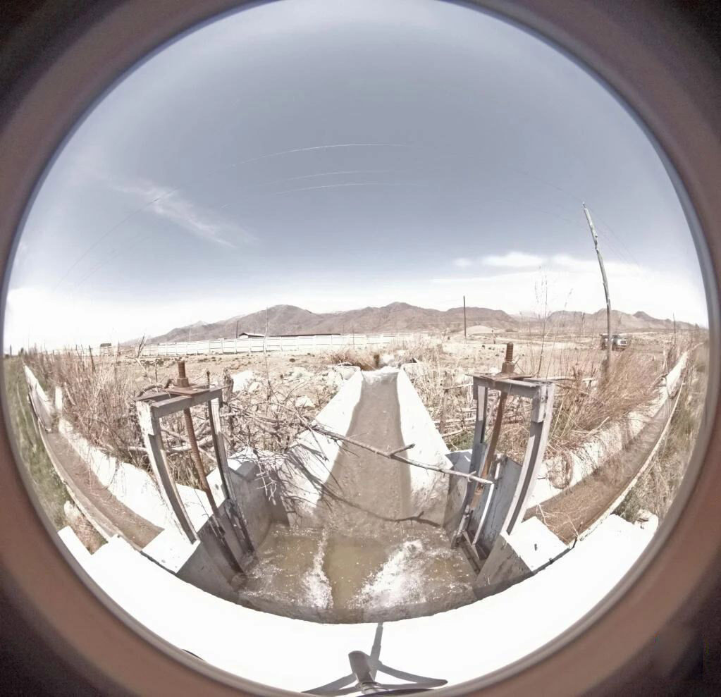 在吉尔吉斯斯坦卡拉奥伊村拍摄的一处经中国援建灌溉工程改造后的水渠