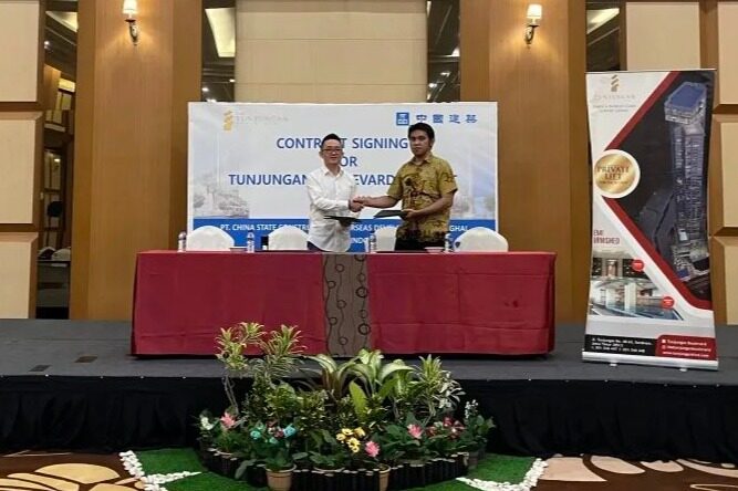 On May 11, 2023, another good news came from the Indonesian housing construction market from the Eighth Bureau of CSCEC. The signing ceremony of the Tunjungan Boulevard high-end apartment project was held in Semarang, Indonesia. Li Jie, general manager of the Indonesian company, Zhao Yebao, deputy general manager, and representatives of the owner, PT. Alam Mas Indonesia, attended the signing ceremony.