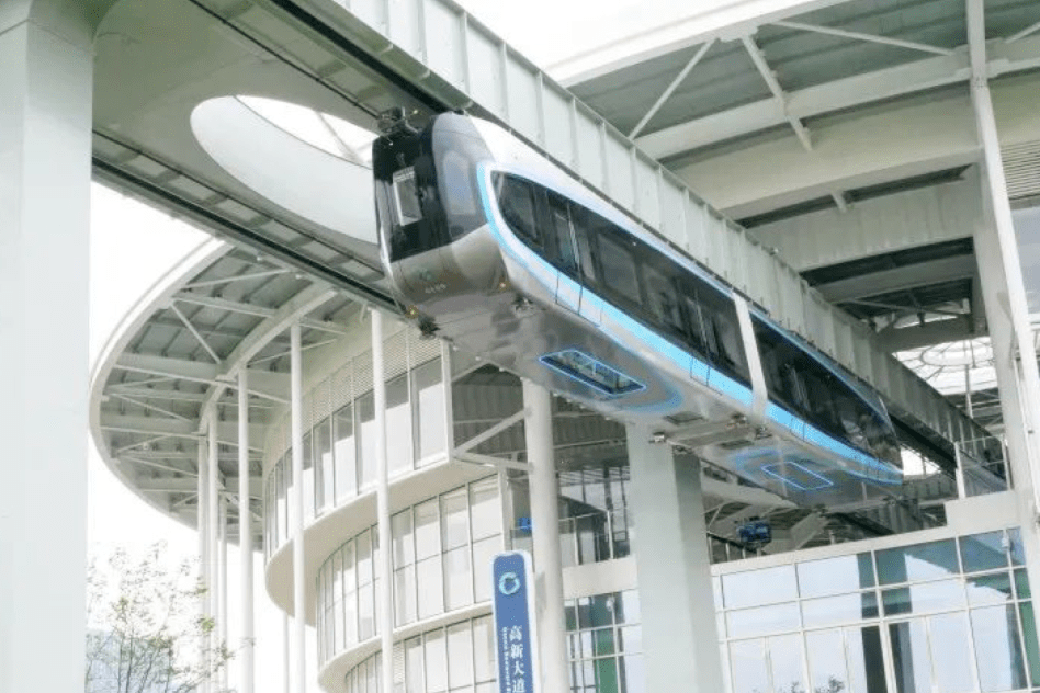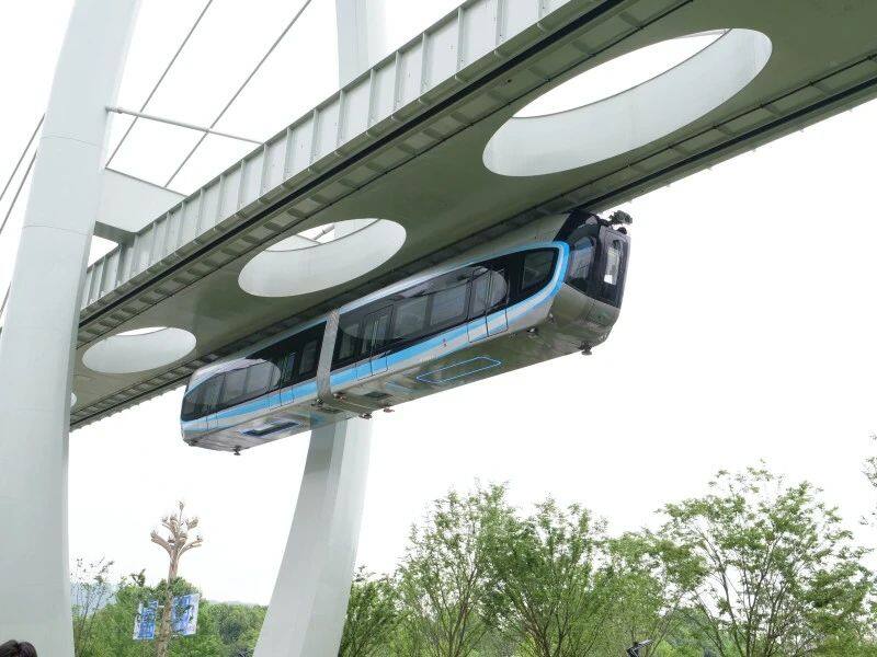 空轨即悬挂式单轨,是一种中低运量、生态环保、绿色低碳的城市交通新制式。其列车悬挂在单型轨道下方,将地面交通移至空中,具有占地少、造价低、转弯半径小等特点。