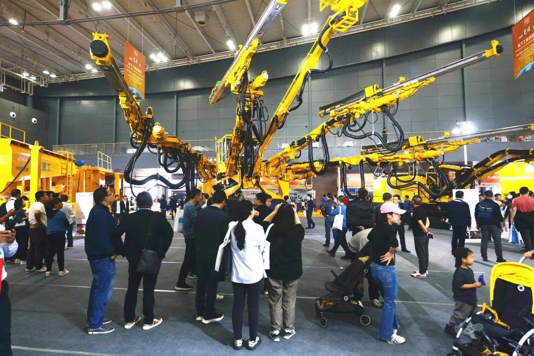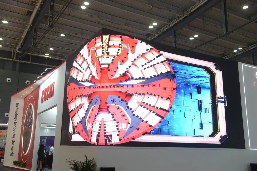 在铁建重工1870平的超大展台里,20余款代表行业领先技术水平的产品整齐列队,接受现场观众的观摩。其中包括国产首台16米级超大直径泥水平衡盾构机“京华号”、国产最大直径土压平衡盾构机“锦绣号”、我国最深海底隧道掘进机“深江1号”以及全工序钻爆法隧道智能装备。