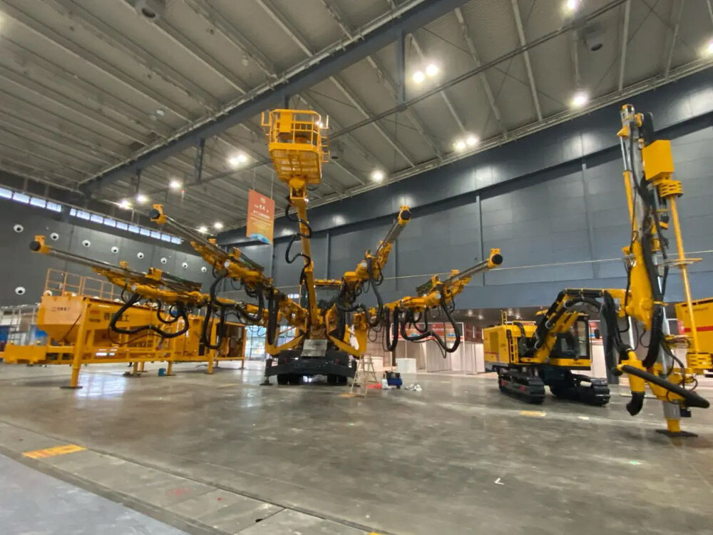 在E6馆,铁建重工几台大黄色装备显得十分醒目。其中,铁建重工全电脑三臂凿岩台车成为现场焦点,三条长臂升入半空。据了解,该设备突破了冗余自由度机械臂钻进精准控制技术、隧道三维扫描与轮廓重建技术、智能型凿岩台车整机集成技术,具备地质分析、机械臂钻进精准控制、隧道三维扫描等先进功能。