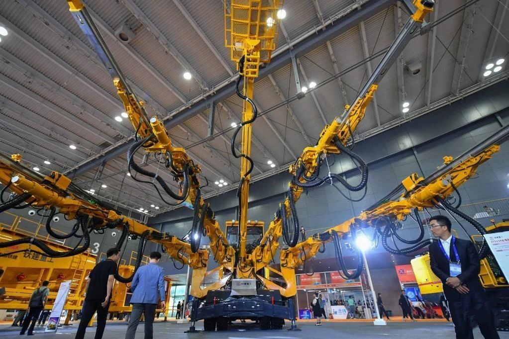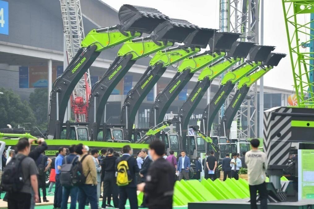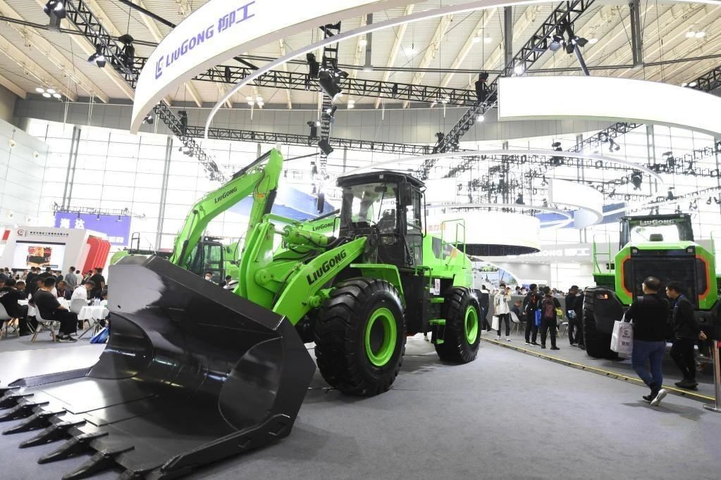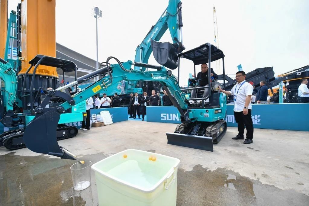 这是5月12日在长沙国际工程机械展览会现场拍摄的新能源工程机械设备