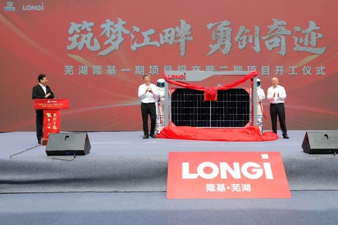 芜湖隆基年产10GW单晶光伏组件项目一期于2022年6月正式动工建设,目前一期项目已开始进入正式量产阶段。二期项目规划建设年产15GW单晶光伏组件,项目总规划占地面积约823亩,总投资约80亿元,预计2024年一季度可实现生产。一、二期项目全面达产后,将实现年销售收入约430亿元,带动就业约4500人。关键词:国内工程、新能源工程