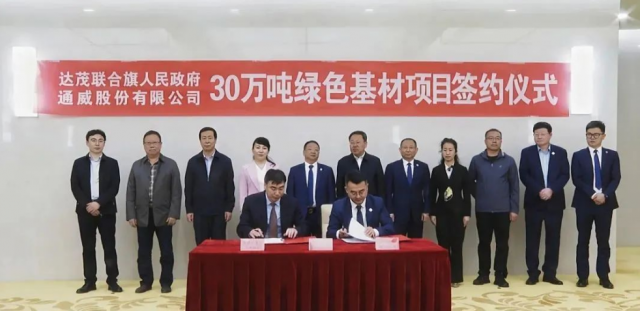 On May 9th, the People's Government of Damao Banner and Tongwei Co., Ltd. held a signing ceremony for the 300000 ton green substrate project. Before the signing ceremony, both parties had a discussion on project cooperation. We unanimously stated that we will take the signing of this project as an opportunity to continuously deepen enterprise local cooperation, anchor the goal of building Baotou City into a "rare earth city" and a "green silicon city", build the project well, expand the enterprise, and strengthen the industry. We will focus on building a flag type industrial cluster with prominent advantages and distinctive characteristics, and fully promote high-quality development. The municipal and flag levels will conscientiously provide enterprise related services, provide comprehensive factor guarantees, promote early start and production of projects, and assist enterprises in developing well and quickly.