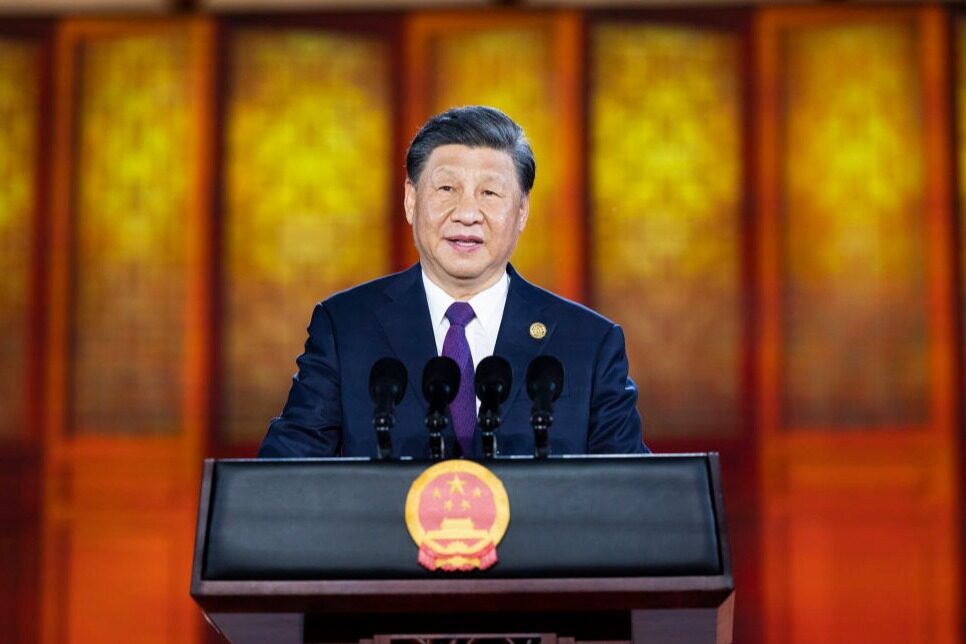 习近平强调,面对百年未有之大变局,着眼各国人民的根本利益和光明未来,我们决心携手并肩,共迎挑战,构建更加紧密的中国-中亚命运共同体,为推动构建人类命运共同体贡献力量。
