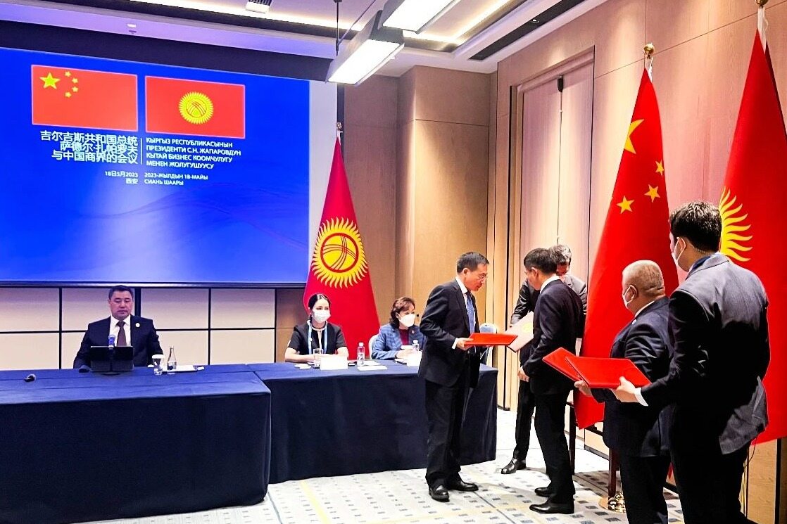 2023年5月18日,在吉尔吉斯斯坦总统萨德尔·扎帕罗夫,吉尔吉斯斯坦驻中国大使阿克提列克·穆萨耶娃、中国驻吉尔吉斯斯坦大使杜德文,中国铁建副总裁汪文忠,中国电力国际发展有限公司总裁高平,中国铁建海外事业部总经理曹保刚等共同见证下,吉尔吉斯斯坦内阁能源部部长伊布拉耶夫·塔拉伊,中铁二十局董事长、党委书记雷位冰,中国电力国际发展有限公司副总裁赵永刚,共同签署了吉尔吉斯斯坦伊塞克库尔1000兆瓦光伏发电厂项目投资框架协议。