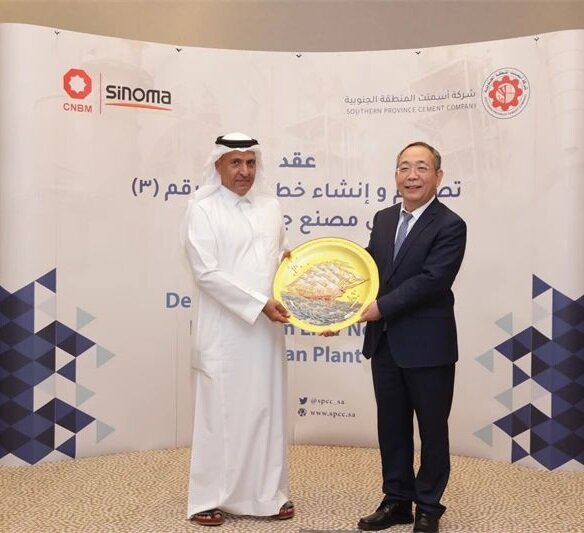 近日,中材国际南京与沙特阿拉伯南方省水泥有限公司共同签署了SPCC吉赞3号线5,000TPD水泥生产线工程总承包合同文件。签约仪式在沙特首都利雅得举行,中材国际南京与邯郸中材管理团队代表、SPCC董事会成员及公司首席执行官Kadasah先生共同参加了签约仪式。