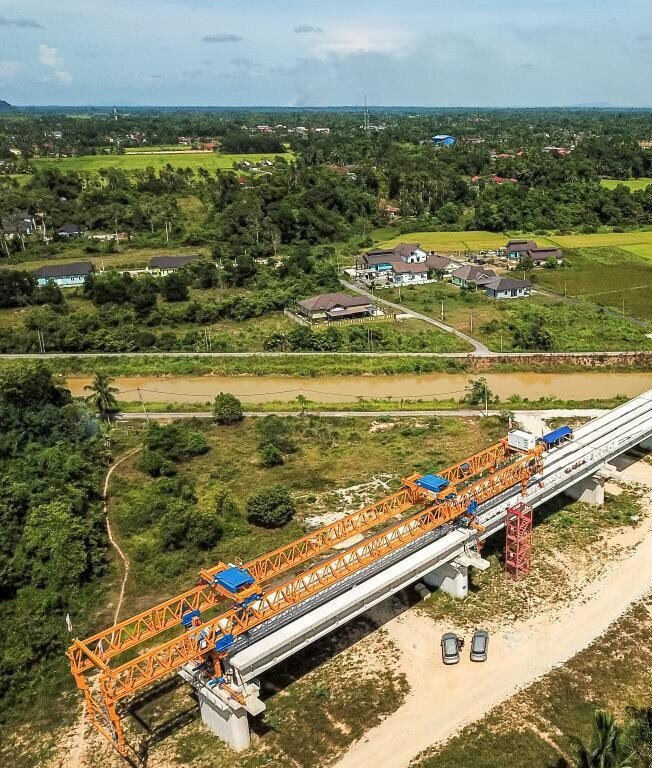 马来西亚吉兰丹州拍摄的马东铁项目一分部5号桥建设现场