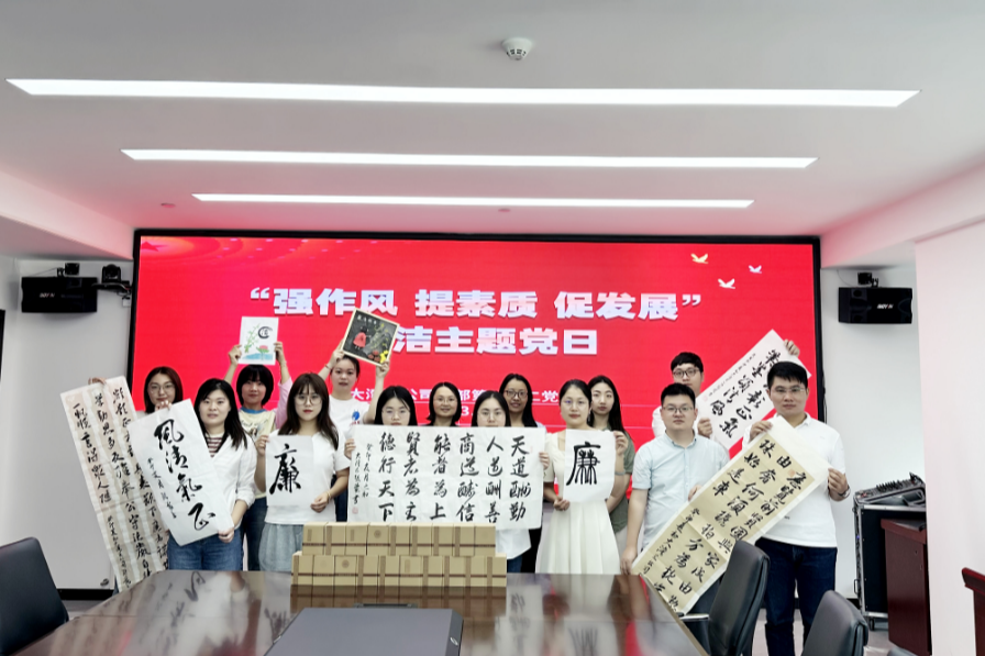 随后,党员干部们还进行了廉洁从业宣誓,观看了廉洁宣传教育片《永远吹冲锋号》、创作了廉洁主题作品。“这次廉洁主题党日不同往日,众人齐绘廉洁长卷,现场手写廉洁书法,即兴创作廉洁粘土……党员干部们以书画传情、以笔墨言志,现场墨香浓浓。公司纪委下了功夫,我们也跟着增长了见识。”党员陈沛佳意犹未尽地说着。