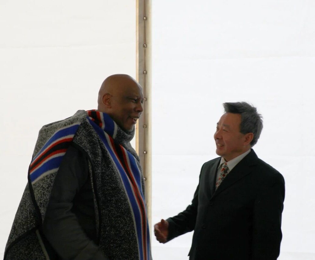 雷大使同莱索托国王莱齐耶三世在开工仪式上交谈