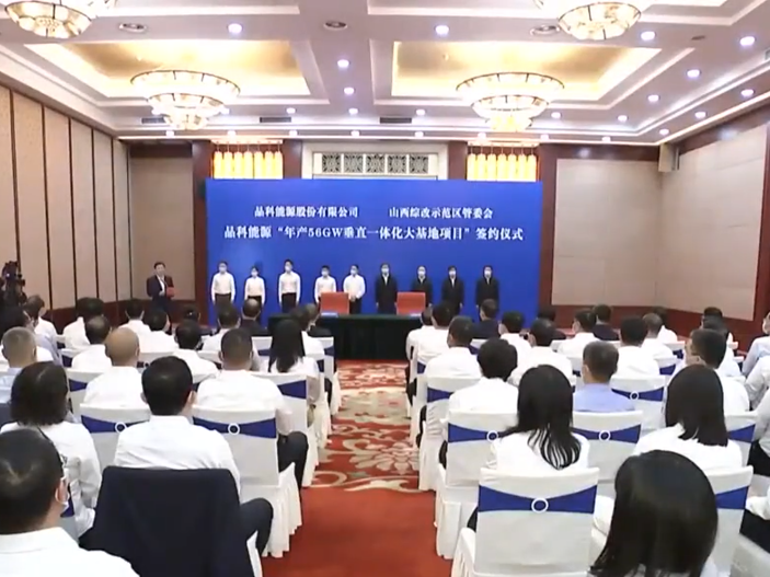 在能源革命、“双碳”的背景下,光伏发电已成为当前及未来新能源发展的重要选择。2023年5月26日,山西综改示范区管委会与晶科能源股份有限公司在太原举行晶科能源“年产56GW垂直一体化大基地项目”投资签约仪式。