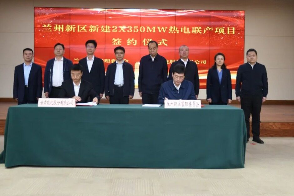 2023年5月25日,兰州新区与甘肃能化股份有限公司新建2×350兆瓦热电联产项目签约仪式举行。新区党工委副书记、管委会主任李东新,甘肃能化股份有限公司董事长许继宗出席并进行签约。