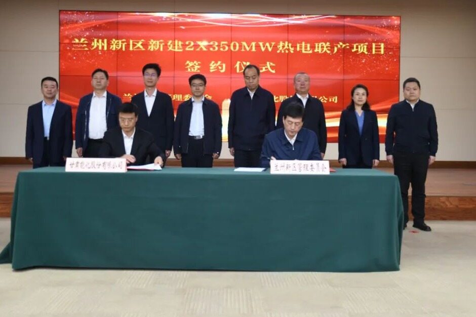 On May 25, 2023, the signing ceremony for the new 2×350 MW cogeneration project between Lanzhou New District and Gansu Energy & Chemical Co., Ltd. was held. Li Dongxin, Deputy Secretary of the Party Working Committee of the New Area and Director of the Management Committee, and Xu Jizong, Chairman of Gansu Nenghua Co., Ltd. attended and signed the contract.