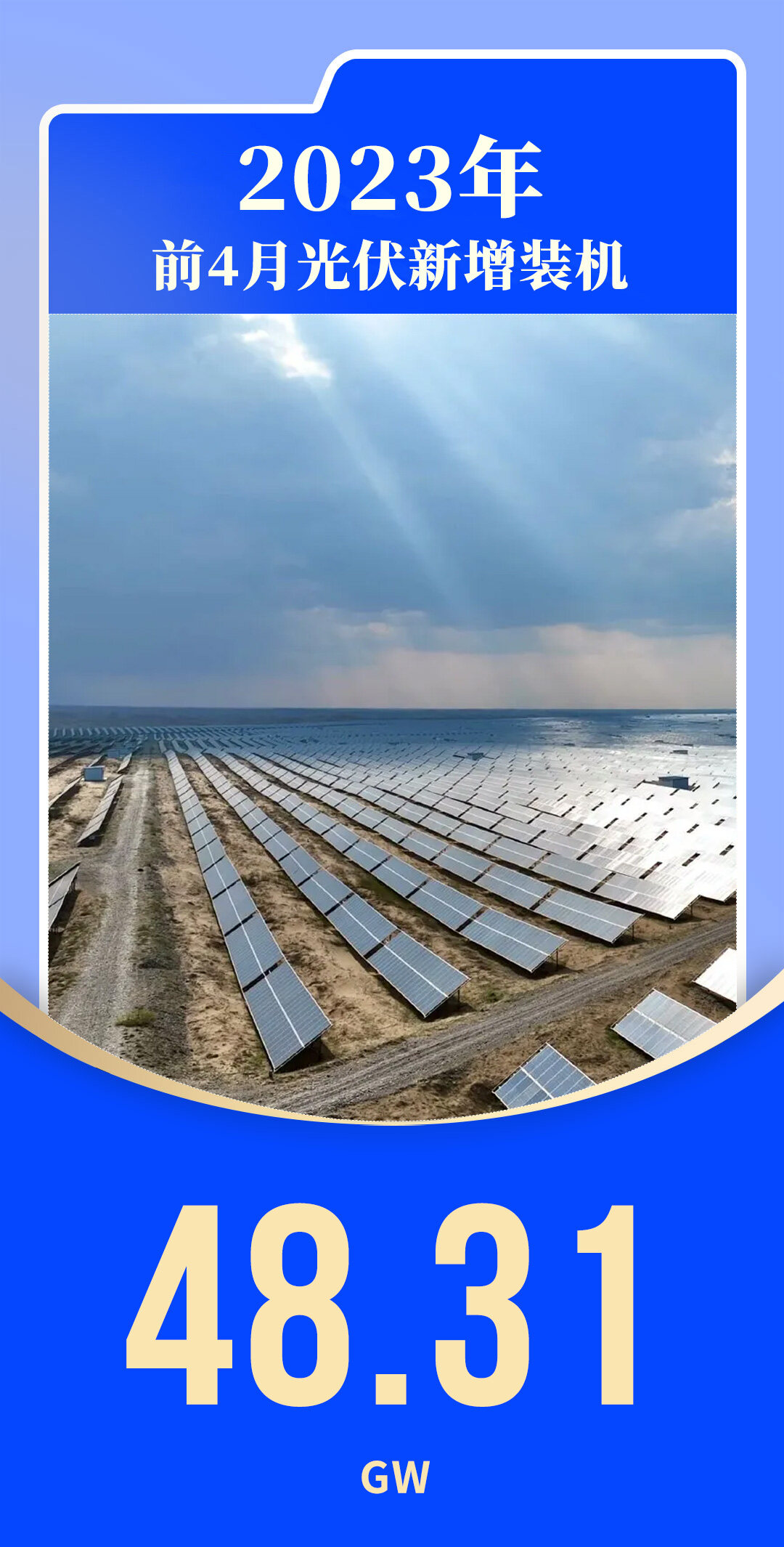 根据国家能源局5月19日发布的全国电力工业统计数据,2023年前4月光伏新增装机48.31GW,较2022年同期增长186.2%;4月新增光伏装机14.65GW,同比增长299.18%。(转载请注明见道网www.seetao.com)见道网战略栏目编辑/许生鹏