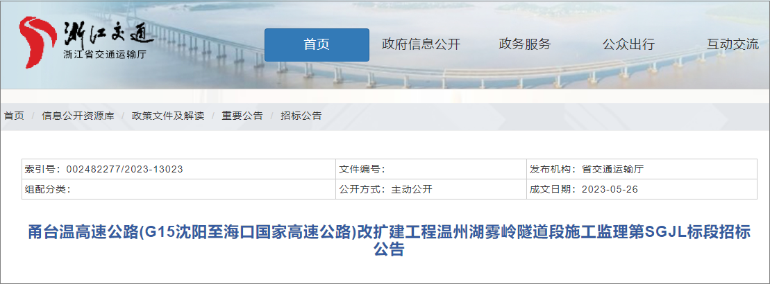 近日, 浙江省公共资源交易中心电子招投标交易平台发布了甬台温高速公路改扩建工程温州北白象至南白象段土建施工招标公告,该项目共分为3个标段建设,项目总投资约66亿元。