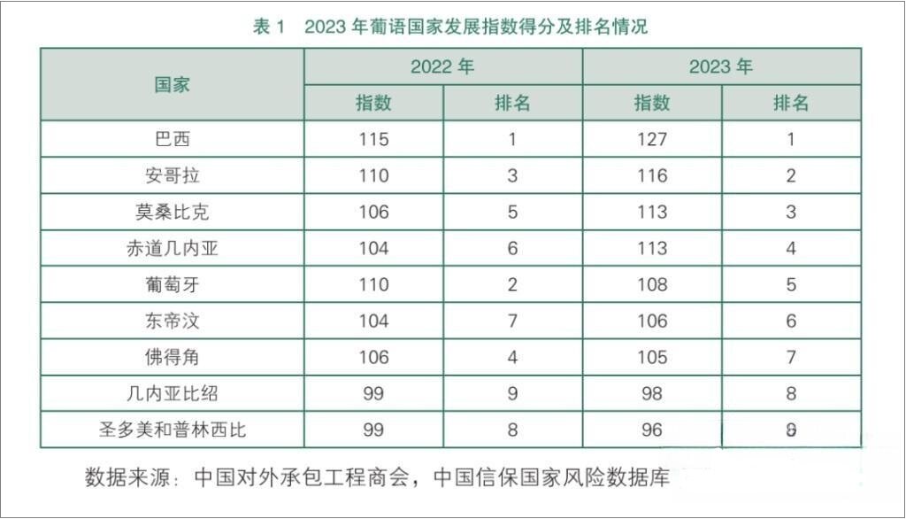 وارتفع مؤشر الهياكل الأساسية للبلدان الناطقة بالبرتغالية ارتفاعا حادا ، مع تركيز الاهتمام على البلدان والمناطق الساخنة . البلدان الناطقة بالبرتغالية مواصلة تحسين سياسات البنية التحتية ، والتنمية الاقتصادية والاستقرار والانتعاش في البلدان الناطقة بالبرتغالية مؤشر تنمية الهياكل الأساسية من 114 في عام 2022 ارتفع إلى 124 . البرازيل وأنغولا وموزامبيق هي من بين البلدان الناطقة بالبرتغالية في مؤشر تنمية الهياكل الأساسية . النقل ، والطاقة ، والصحة العامة وغيرها من مجالات التنمية وارتفاع الطلب والحرارة ، وجذب اهتمام المستثمرين والمقاولين في جميع أنحاء العالم .