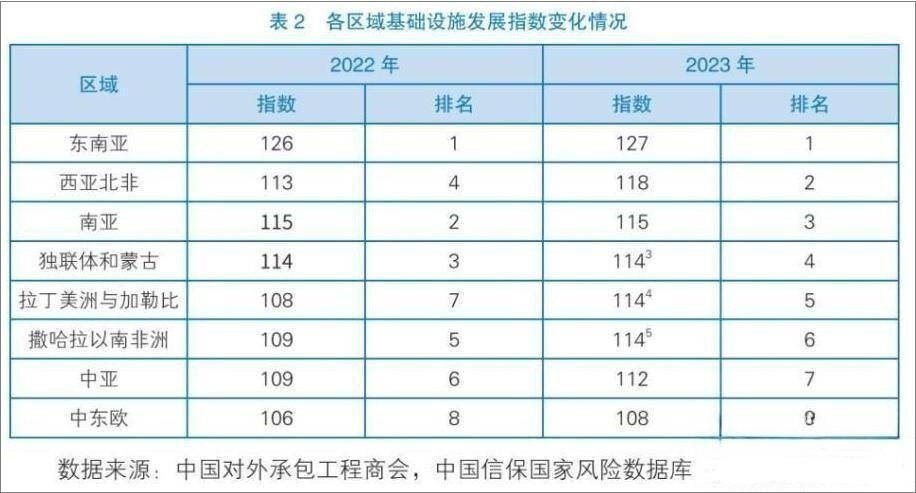 جنوب شرق آسيا تقود العالم ، غرب آسيا وشمال أفريقيا من المتوقع أن تزيد من سرعة البناء الوطني . دول جنوب شرق آسيا لديها سياسة واضحة ومستقرة في مجال البنية التحتية ، بيئة الأعمال التجارية ، ودعم الصناعة سليمة ، هذا العام مؤشر تنمية البنية التحتية 127 ، لتحتل المرتبة الأولى في جميع أنحاء العالم . ارتفاع أسعار الطاقة وتحسين العلاقات مع الدول الكبرى ، مما دفع بلدان غرب آسيا وشمال أفريقيا إلى المرتبة الثانية في المؤشر الإقليمي . من وجهة نظر وطنية ، ما يقرب من 80 ٪ من عينة من البلدان ارتفع مؤشر التهديف ، من بينها ، إندونيسيا ، الفلبين ، المملكة العربية السعودية في المرتبة أعلى ثلاثة مؤشرات وطنية .