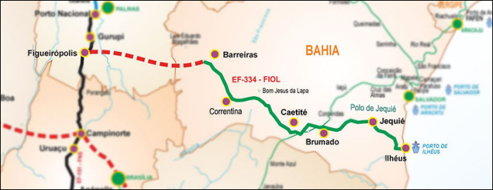 FIOL 3: 从巴伊亚州的Barreiras到托坎廷斯州的Figueirópolis,全长505公里,施工尚未开始。
