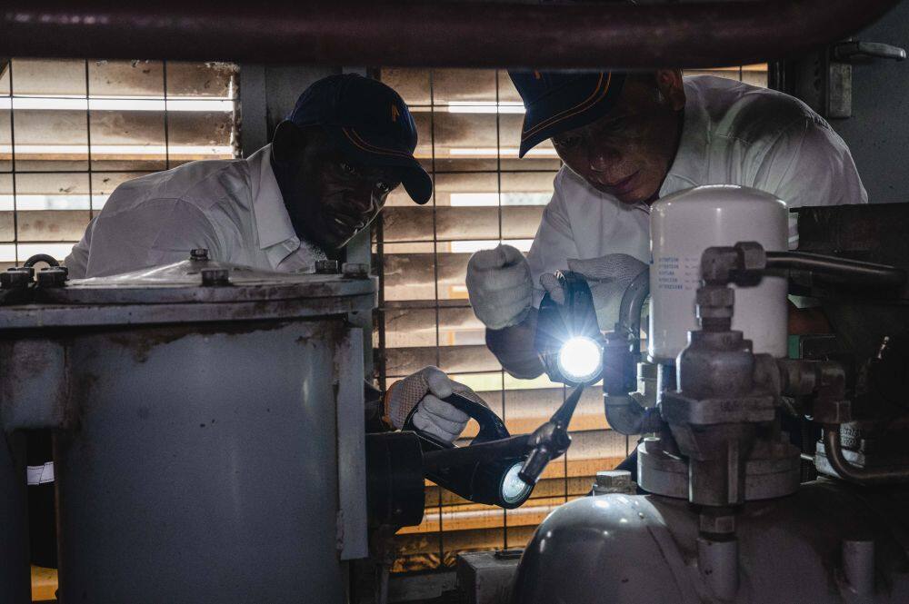 霍勒斯是蒋立平的学员,他们一同协作,往返于蒙内铁路的沿途站点。在6平方米的驾驶室内,内燃机的轰鸣阻隔话语的传递,驾驶员间的默契格外重要。