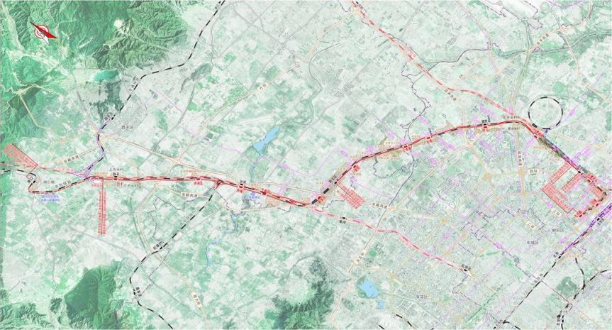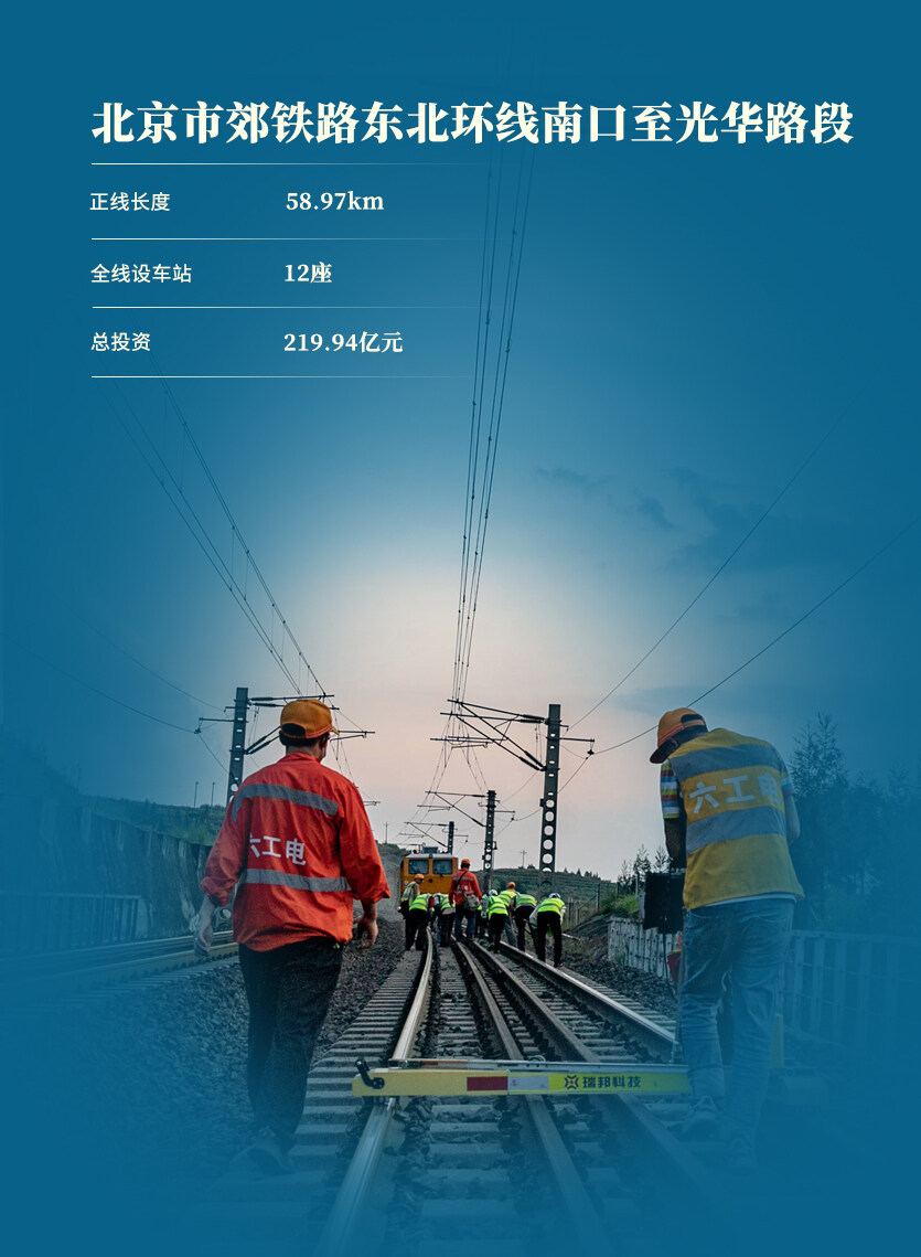 市郊铁路东北环线南口至光华路段工程南起朝阳区光华路站,北至昌平区既有南口站,其中光华路至北京朝阳站段为新建双线,北京朝阳站至昌平站段主要为增建二线,昌平至南口站段为现状电化。