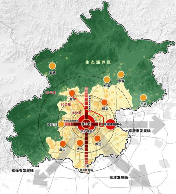 东北环线通过与S2线、副中心线的联通串联了北京市城市空间结构一核的首都功能核心区、一主中心城区、一副城市副中心、多点中的房山、昌平、延庆新城,将为北京市中心区域与各新城间提供快捷、安全、有效的轨道交通模式。本线从南口至光华路旅行时间宜为1h左右。