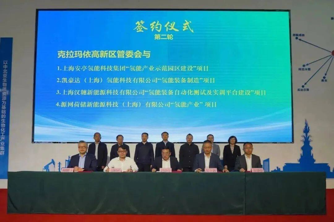 近日,嘉定氢能港企业考察团与新疆克拉玛依市克拉玛依区、白碱滩区(克拉玛依高新区)签订合作协议。根据协议,双方将进一步打造产业百亿增幅爆点,以长期稳定的全面战略合作,开创沪克两地氢能产业创新协同发展新局面,推动产业援克工作取得新成效。