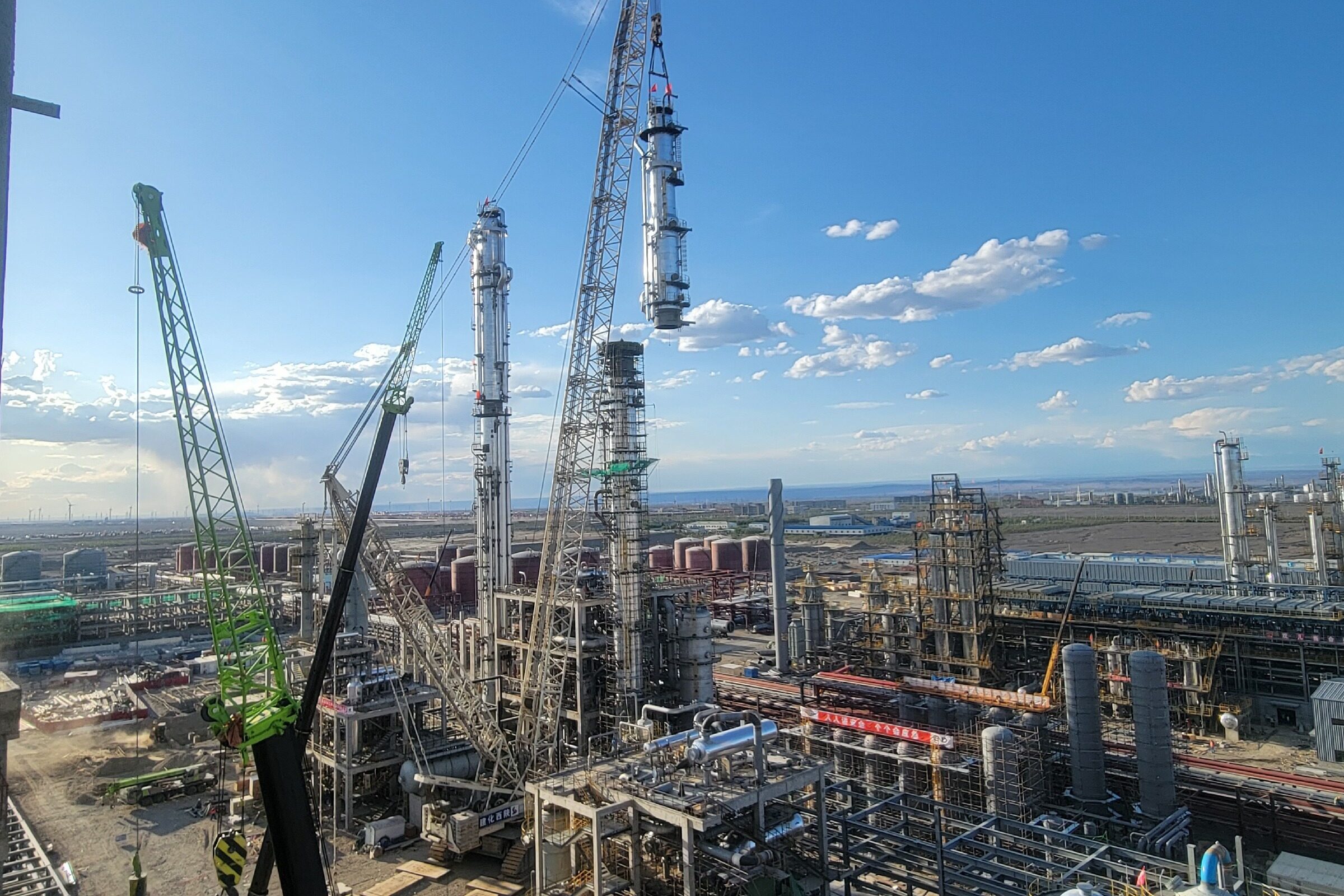 The washing tower of low temperature methanol washing unit is the core equipment of the project. The equipment is 91 meters high, 3.1 meters in diameter and weighs 725 tons. In order to ensure the successful completion of the lifting task, the project management team prepared a special construction lifting plan based on the actual situation of the site, and used 1250t crawler crane main crane and 400t crawler crane tail to carry out segmentation lifting operations.