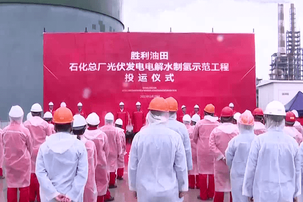 近日,山东东营区史口镇胜利油田石油化工总厂内,胜利油田石化总厂光伏发电电解水制氢示范工程投运成功,首台套兆瓦级绿电碱性水制氢项目正式投运。