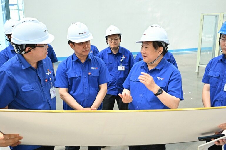 2023年6月10日下午,谭旭光到潍柴(潍坊)新百万台数字化动力产业园现场调度项目建设情况。他说,潍柴新百万台数字化动力产业园要按照发动机未来战略布局,高标准、高质量、高速度推进,确保今年11月1日全线建成投产,打造全球最先进、最智能的发动机数字化制造基地!