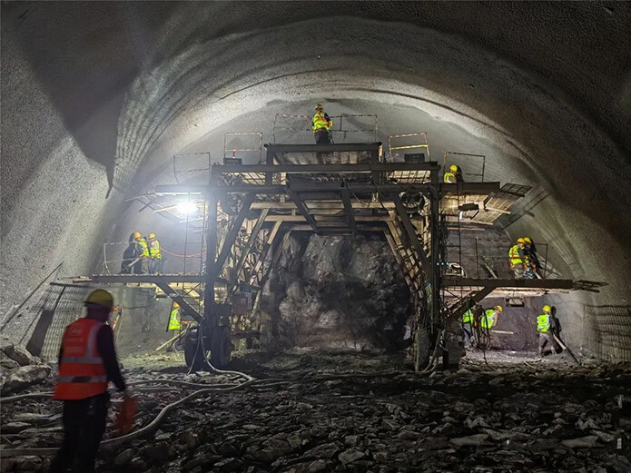 为克服不良地质条件带来的困难并安全高效施工,建设单位采取先支护、后开挖、短进尺、弱爆破、快封闭、勤量测的工作原则精心组织施工,在下穿七零水库区域采用超前水平钻、地质雷达法等探测隧道前方地质情况,确保隧道施工安全有序推进。