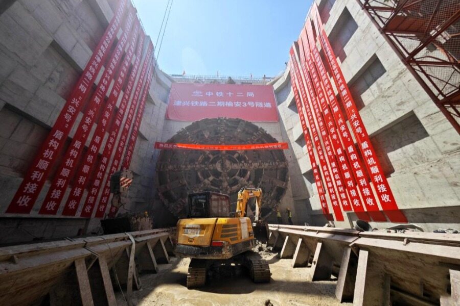 2023年6月22日,随着直径12.72米的兴安号盾构机刀盘破壁而出,津兴铁路榆安3号隧道顺利贯通,标志着津兴铁路全线主体已顺利完工。