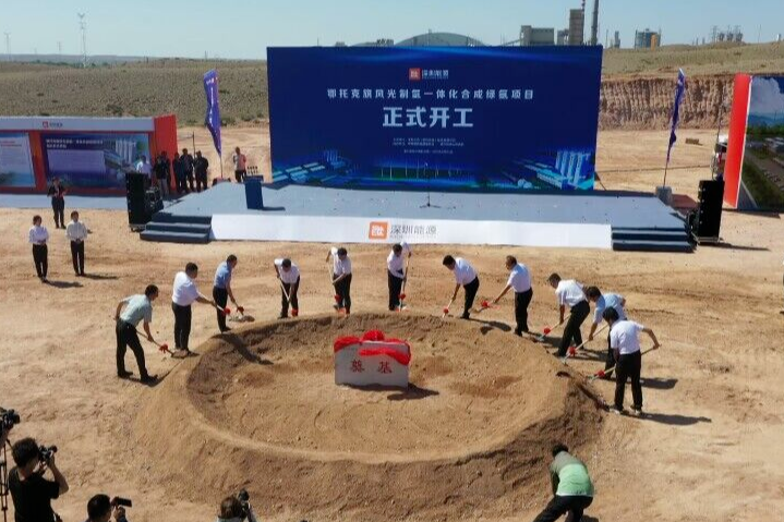 鄂托克旗风光制氢一体化合成绿氨项目于2022年9月29日列入自治区第二批风光制氢示范项目,是鄂尔多斯市首个开工的自治区第二批风光制氢示范项目,该项目总投资38亿元,新建年产2万吨绿氢电解水制氢站及配套的500兆瓦风力发电场和长约60公里220千瓦输电线路工程;新建5兆瓦离网光伏发电柔性直流制氢科技创新项目;下游新建配套年产15万吨绿氢合成氨装置及加氢加油加气充电桩综合站一座。