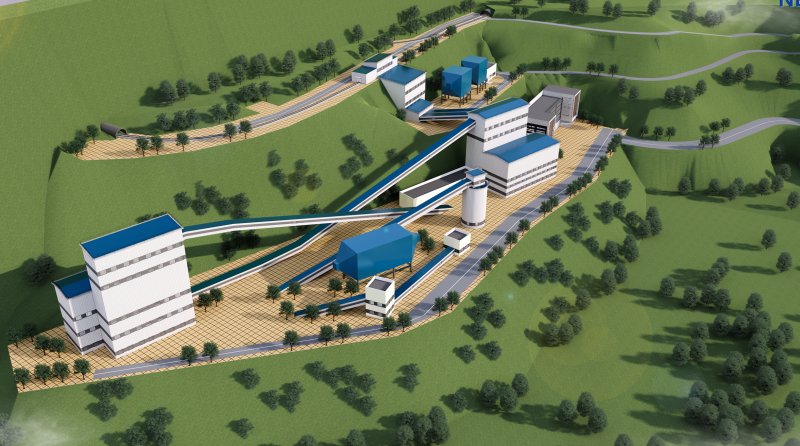 敦德450万吨绿色智慧采选技术改造项目选矿厂区建设效果图