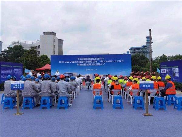 2023年6月27日,永泰能源所属子公司德泰储能1000MW全钒液流储能装备制造基地正式开工,项目一期计划建成300MW/年大容量全钒液流电池及相关产品生产线,预计建设周期预计为12个月。同时也将同步完成储能模块装配及系统集成,预计将在2024年下半年投产。