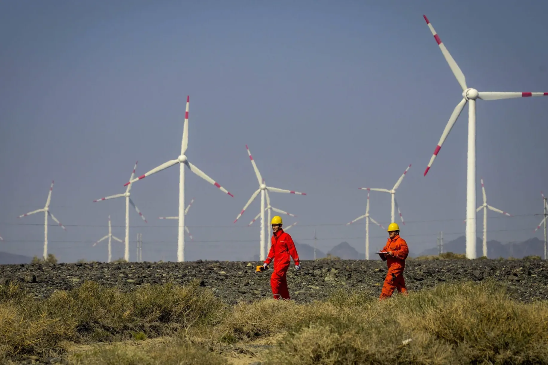 在库布其沙漠,全球最大的风光基地正加紧建设。上百台大型工程机械,每天完成200亩沙丘平整。按照规划,2023年年底前,一期100万千瓦光伏发电项目将实现并网发电。