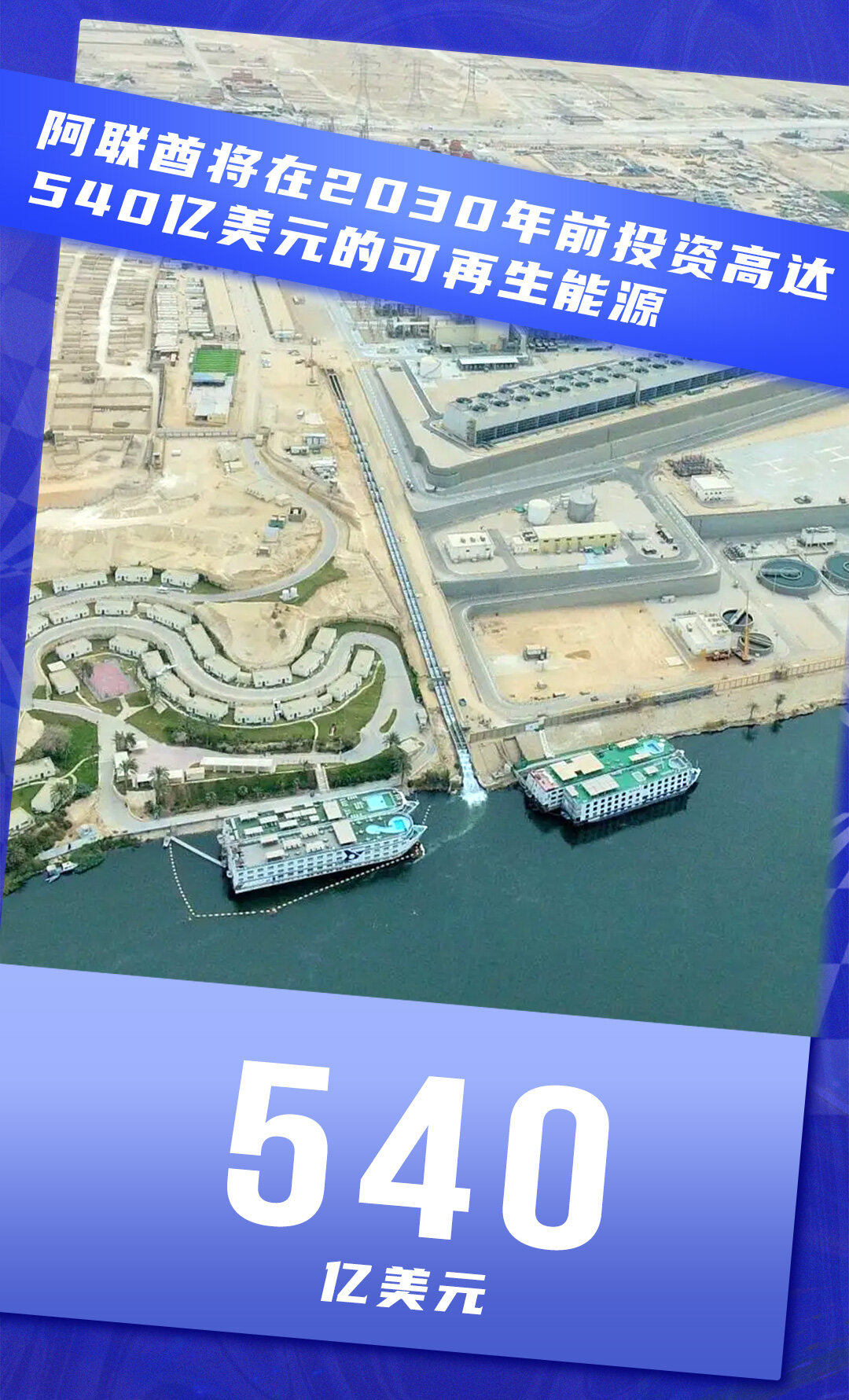 阿拉伯联合酋长国宣布计划在未来七年内向可再生能源技术投资多达540亿美元。该国的目标是在2050年净零目标之前将可再生能源生产的能源份额提高三倍。