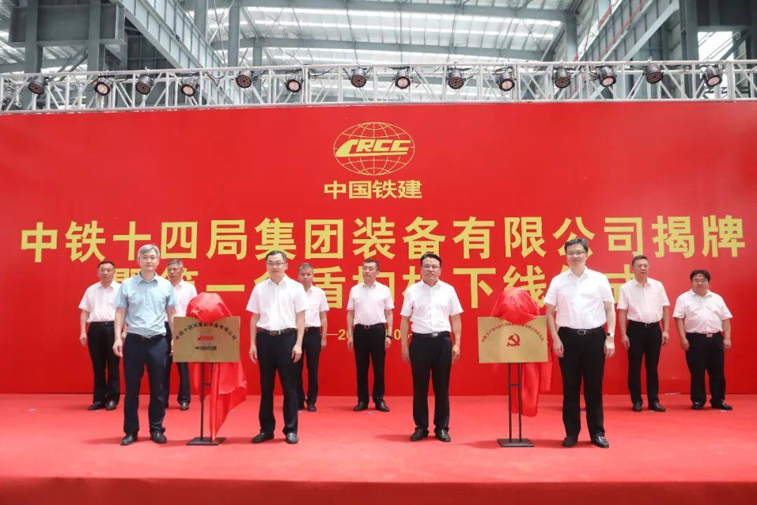 At the event, Zhou Changjin, Ding Feng, Li Fangdong, and Shi Hongjie jointly unveiled the plaque for China Railway 14th Bureau Group Equipment Co., Ltd