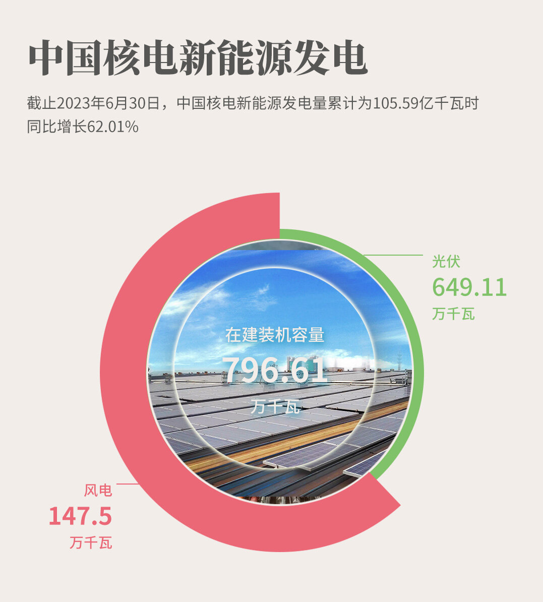截止2023年6月30日,公司新能源发电量累计为105.59亿千瓦时,同比增长62.01%,其中:光伏发电量54.90亿千瓦时,同比增长51.83%,风力发电量50.69亿千瓦时,同比增长74.69%。新能源上网电量103.81亿千瓦时,同比增长61.92%。
