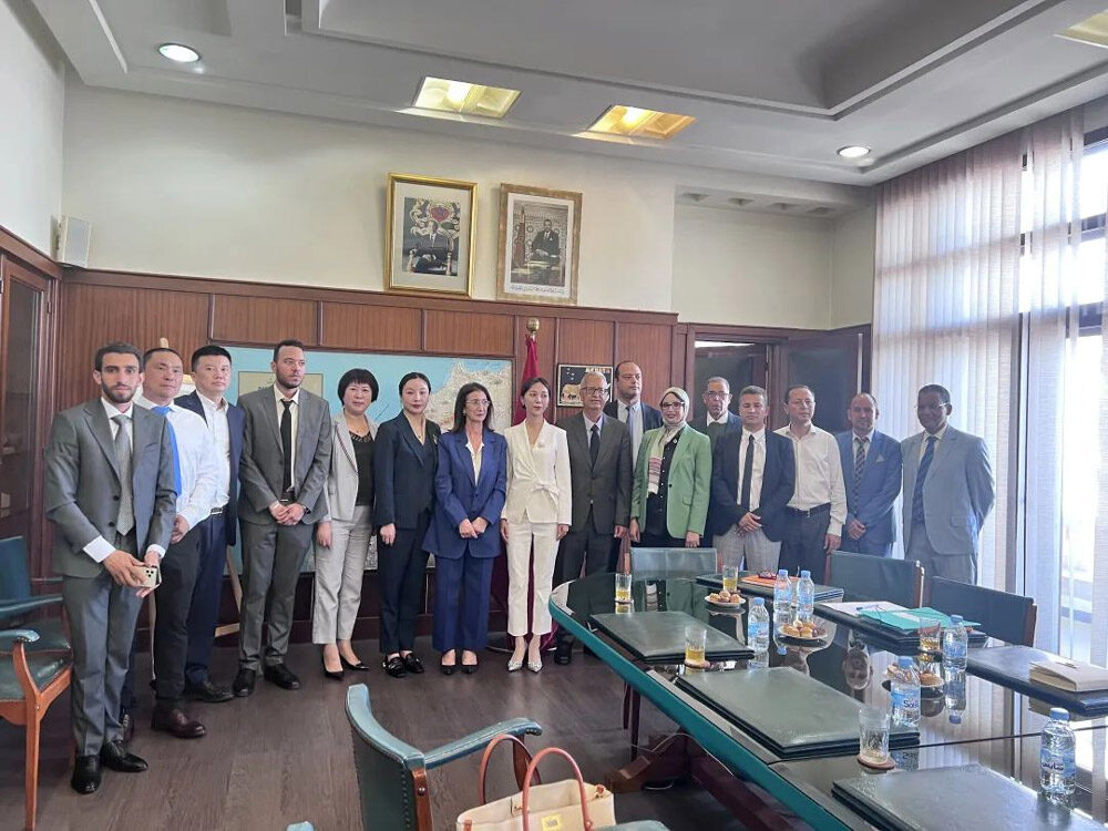 摩洛哥国家矿业和碳氢化合物管理总局局长阿米娜·本赫德拉(左7)与张珈菱(左6)会谈并合影