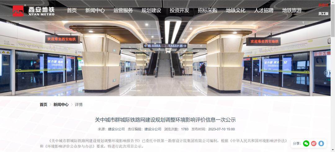 中国交通大省陕西目前正在规划建设新一轮城际快速铁路系统。2023年7月10日,西安地铁官网发布《关中城市群城际铁路网建设规划调整环境影响评价信息一次公示》,公布了3条城际铁路:阎良(富平)至机场、西安至法门寺城际铁路法门寺至绛帐段、西安至法门寺城际铁路眉县东至太白段。共计约123.4km,车站19座。