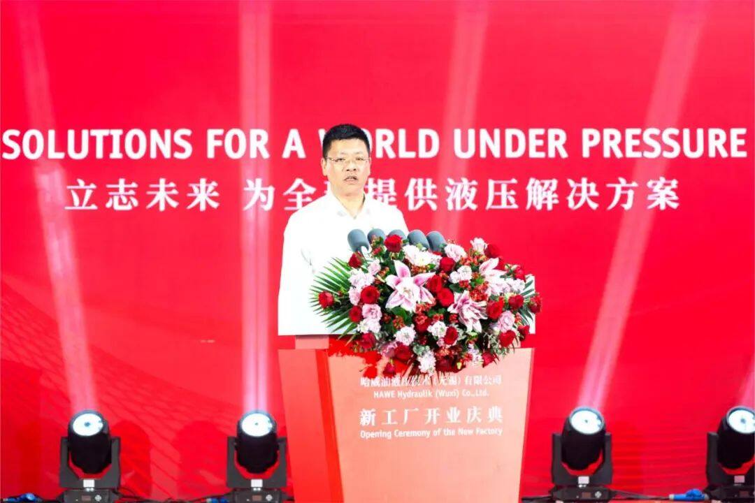 无锡市锡山区常委、锡山经济技术开发区党工委副书记、管委会主任陶波先生代表地方政府对哈威新工厂开业表示热烈祝贺,并表示此次哈威在锡山投资设立亚太区研发及制造基地,充分体现了哈威对锡山投资环境和发展前景的高度认可,必将为锡山高端装备产业发展注入强劲动能。
