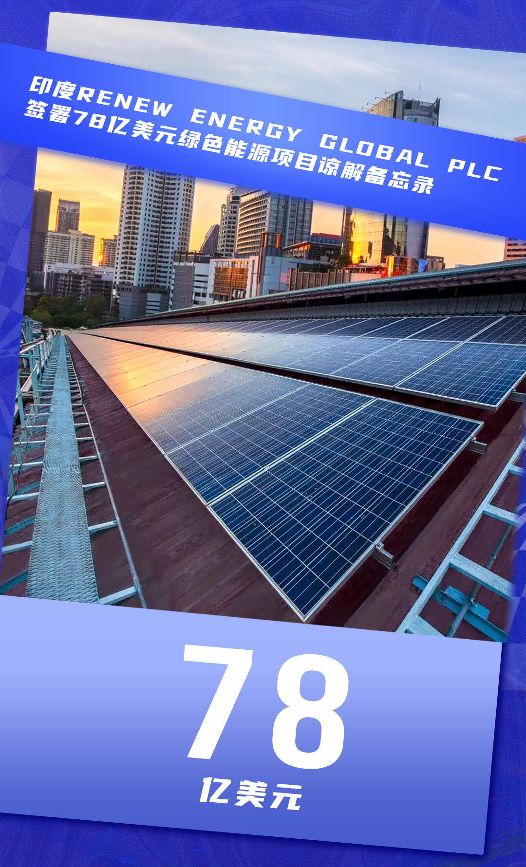 印度领先的脱碳解决方案公司ReNew Energy Global Plc宣布已与电力金融公司和农村电气化公司签署了价值78亿美元的谅解备忘录绿色能源项目。