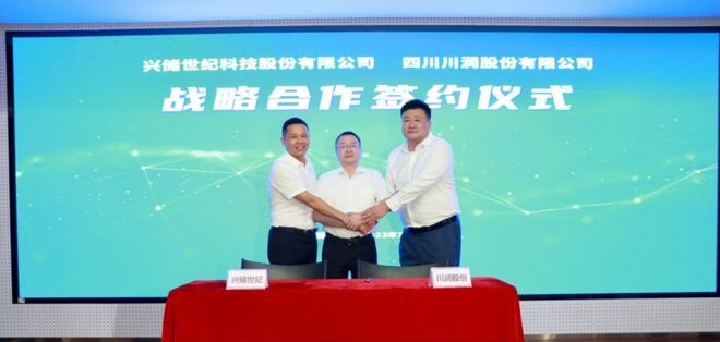 2023年7月25日,兴储世纪科技股份有限公司与川润股份签署战略合作协议,双方将资源共享、优势互补,共同推动储能产品、液冷系统集成等产品的开发与技术创新,打造储能产业联合体,通过在新能源整体解决方案及子系统等领域全面合作,打造储能行业新生态。