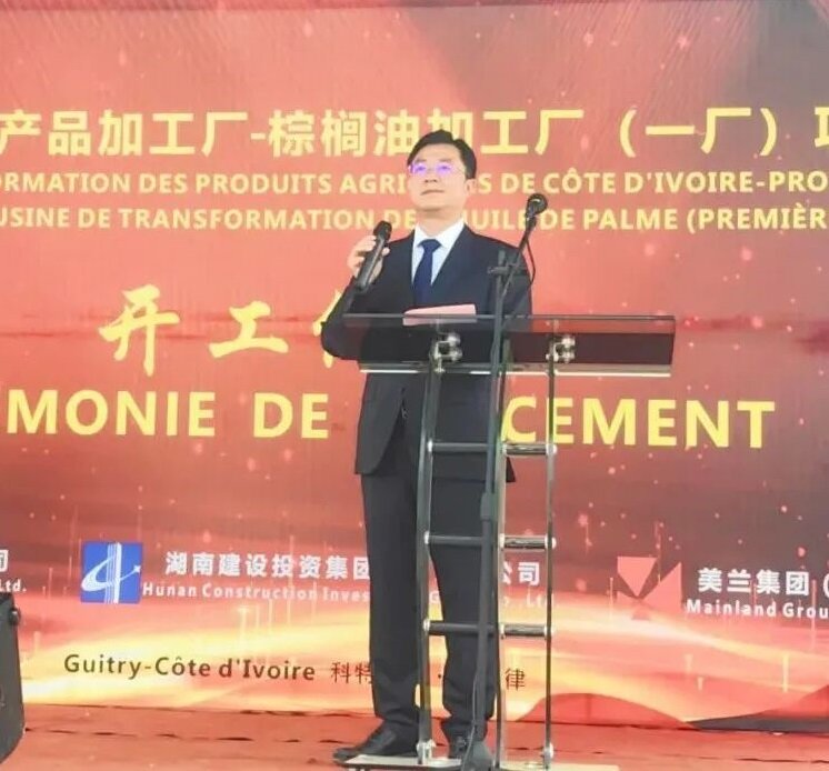 Recently, the commencement ceremony of the Cote d'Ivoire Agricultural Products Processing Plant Palm Oil Processing Plant (Plant 1) project invested and constructed by Chinese enterprises was held in Gitrot, Cote d'Ivoire. Cai Dianwei, secretary of the Party Committee and chairman of Hunan Construction Investment Group, led the group's economic and trade delegation to attend the commencement ceremony.