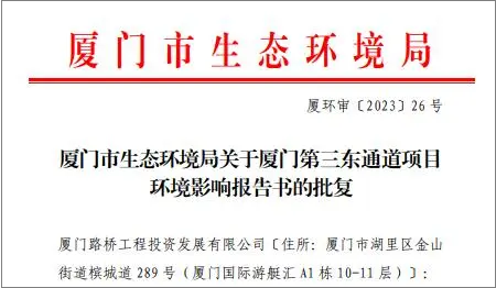 2023年7月26日,厦门市生态环境局发布关于厦门第三东通道项目环境影响报告书的批复。这意味着,第三东通道距离正式开工更近了。