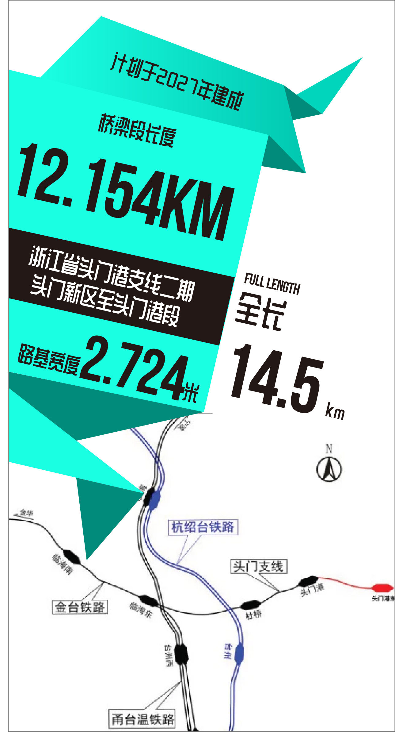 二期正线全长14.508km,其中,桥梁段长度12.154km,路基段长度2.724km。全线共设置特大桥一座,共设计车站两座,建设地址位于浙江省临海市,计划于2027年建成。