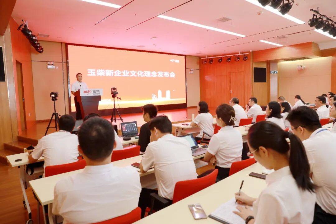 2023年8月3日,在玉柴总部,玉柴集团正式发布新企业文化理念,主要包括企业使命、愿景、核心价值观 (生存观) 等核心理念以及“两种文化”、行事准则等特色文化。发布会上,玉柴集团党委书记、董事长李汉阳作新企业文化理念宣讲。