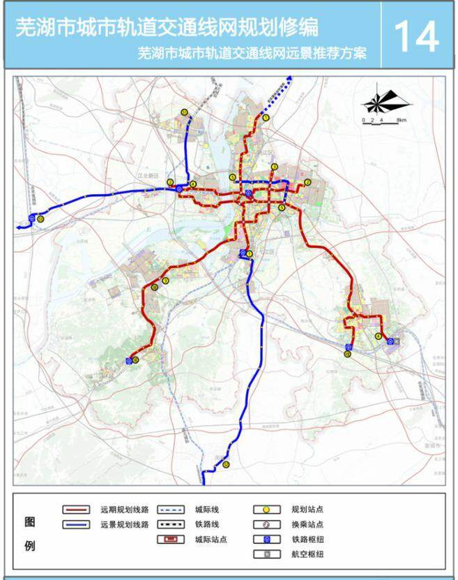 2035年,芜湖市常住人口500万人,城镇人口430万人,城市轨道交通宜在城市公共交通体系中发挥骨干作用,建立与土地利用相协调、规模合理、层次清晰、高效一体化的城市轨道交通体系。