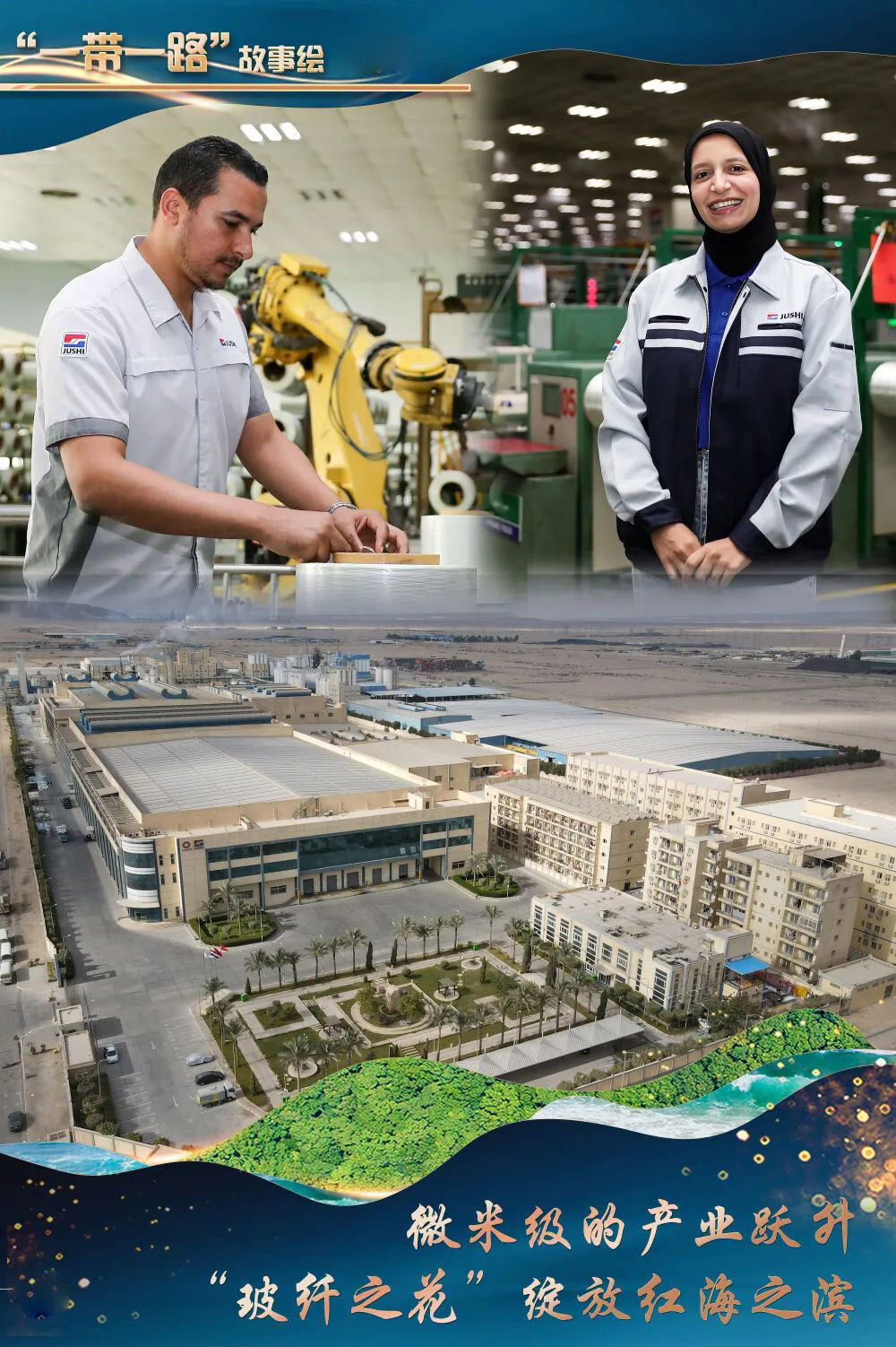 埃及,几千年前就发现并使用玻璃器具,中国巨石埃及公司作为中埃共建一带一路重要成果,使埃及玻璃纤维行业实现从无到有,助力埃及制造业产业跃升,带动上下游产业链发展,培养大量当地人才。